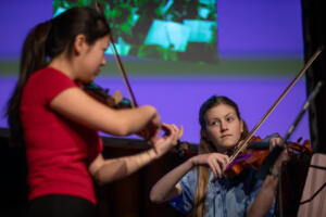 Het Jeugdorkest Nederland zorgde met een viooltrio voor de muzikale omlijsting van deze middag. (Foto: Rob Baas)